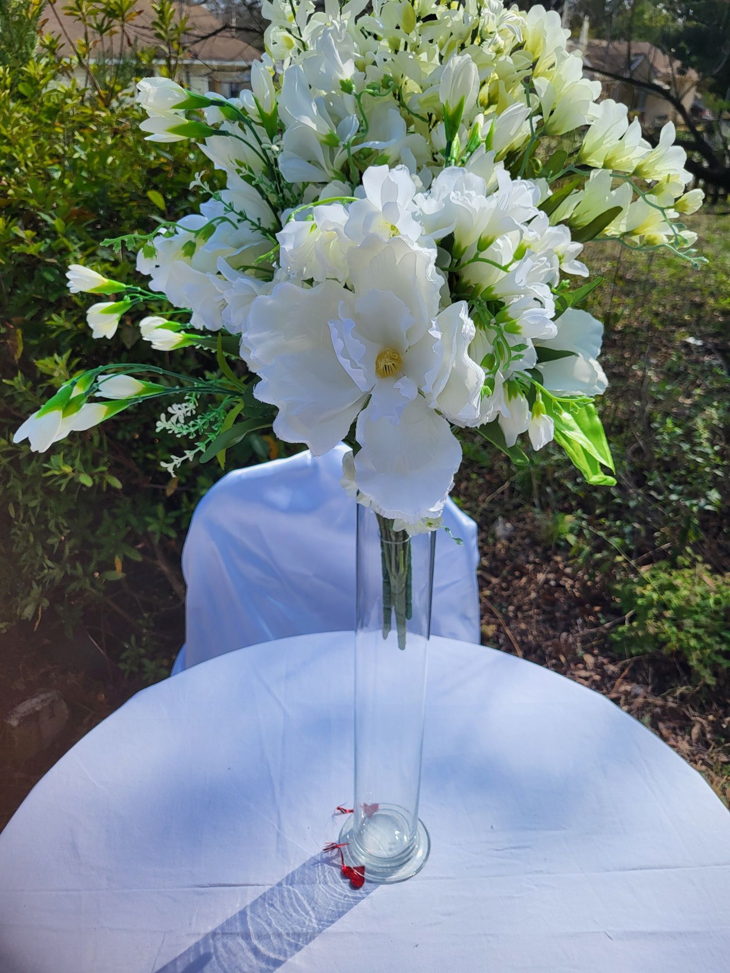 Décor items like columns, arches, vases, floral arrangements, drapery, and curtains help complete your theme